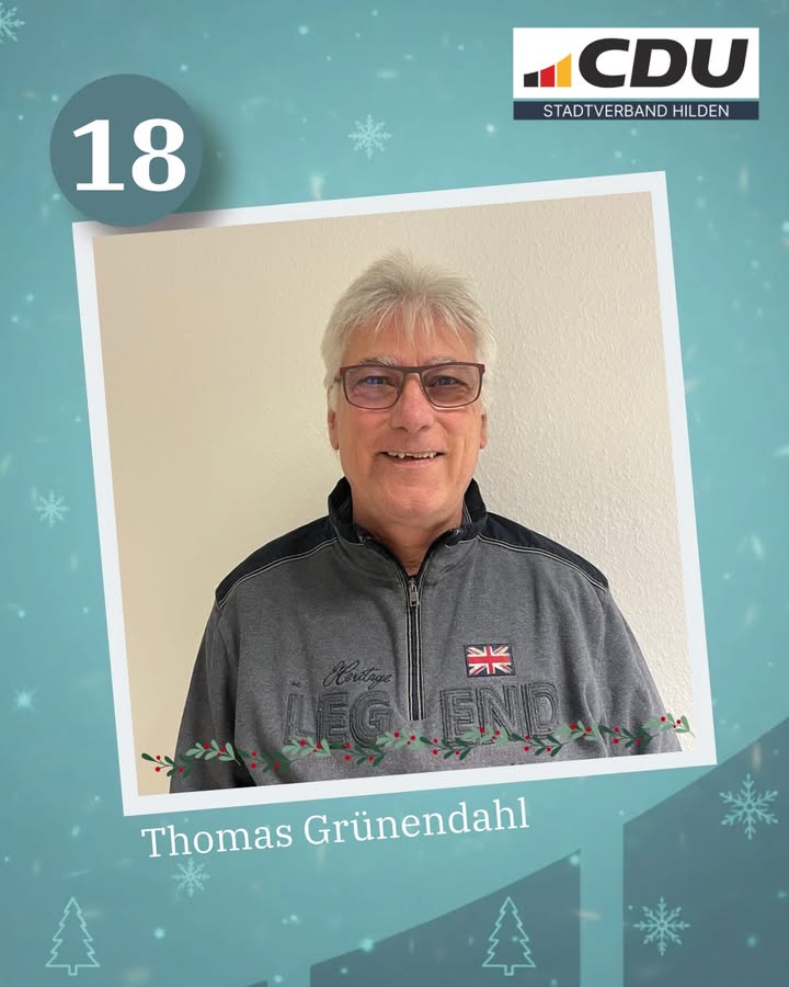 mehrHeute öffnen wir unser nächstes Türchen im Adventskalender. 🎄👉 Martin Sudhoff, 48 Jahre alt, ist Mitglied im Rat der Stadt Hilden für die CDU.In der Vorweihnachtszeit isst er besonders gerne Heidesandplätzchen und freut sich auf die vielen fröhlichen Lichter in der Adventszeit. ⭐️
