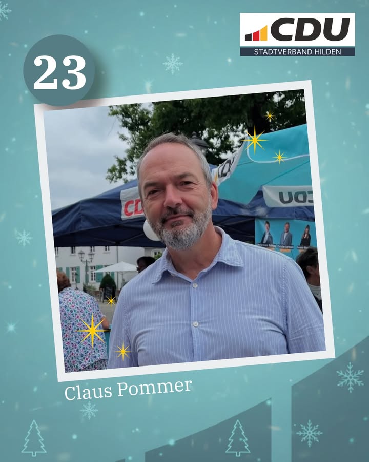 mehrHeute öffnen wir unser nächstes Türchen im Adventskalender. 🎄👉 Dr. Claus Pommer, 56 Jahre alt, ist Bürgermeister der Stadt Hilden.In der Weihnachtszeit isst er besonders gern Vanillekipferl. Jedes Jahr freut er sich außerdem auf das Weihnachtsmarktwochenende in Hilden, das für ihn zur Vorweihnachtszeit einfach dazugehört und die Innenstadt mit einer besonderen Atmosphäre erfüllt. 🎄❄️