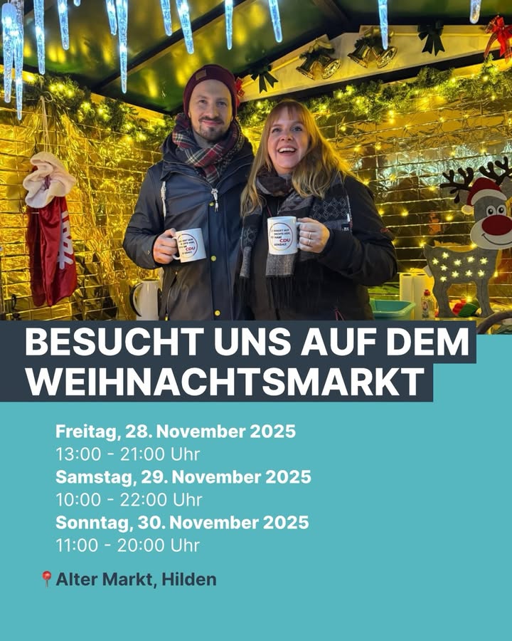 Auch in diesem Jahr sind wir wieder mit unserem traditionellen Stand auf dem Hildener Weihnachtsmarkt vertreten!