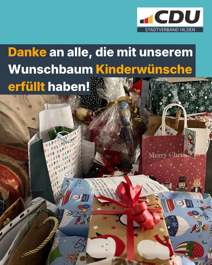 Unser Dank gilt außerdem den unterstützenden Einrichtungen SKFM Hilden e. V., SPE Mühle und der sozialpädagogischen Familienhilfe sowie unserer Fraktionsvorsitzenden Claudia Schlottmann, die die Aktion seit vielen Jahren begleitet und unterstützt. 🎄