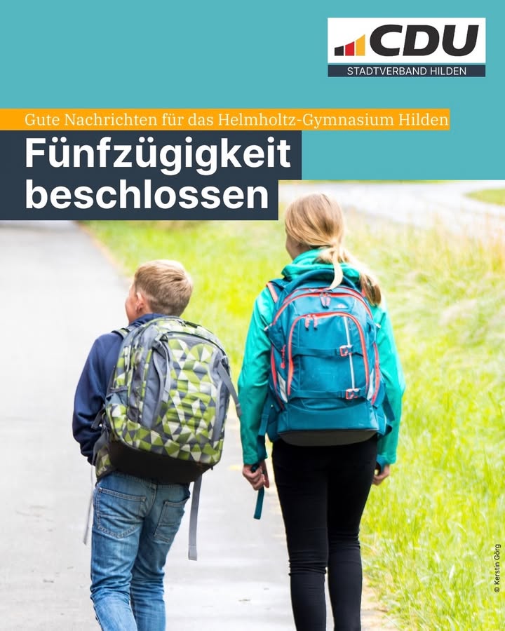 📚 Entscheidung zur Schulentwicklung in HildenDer Rat der Stadt Hilden hat nach Vorberatung im Ausschuss für Schule und Sport beschlossen:➡️ Das Helmholtz-Gymnasium Hilden wird ab dem Schuljahr 2026/2027 fünfzügig geführt.👉 Grundlage dieser Entscheidung sind die aktuellen Schülerzahlentwicklungen sowie die bekannten Anmeldungen aus den vergangenen Jahren. Die Entwicklung der Schülerzahlen wird weiterhin kontinuierlich beobachtet. Sollte es künftig zu einem deutlichen Rückgang kommen, kann die Zügigkeit entsprechend angepasst werden.ℹ️ Mit dieser Entscheidung schafft die Stadt Hilden Planungssicherheit für Schülerinnen und Schüler, Eltern sowie Lehrkräfte und reagiert auf den aktuellen Bedarf im Schulbereich. Bildung hat für uns oberste Priorität, denn zu guten Schulbedingungen gehört es auch, überfüllte Klassen zu vermeiden.