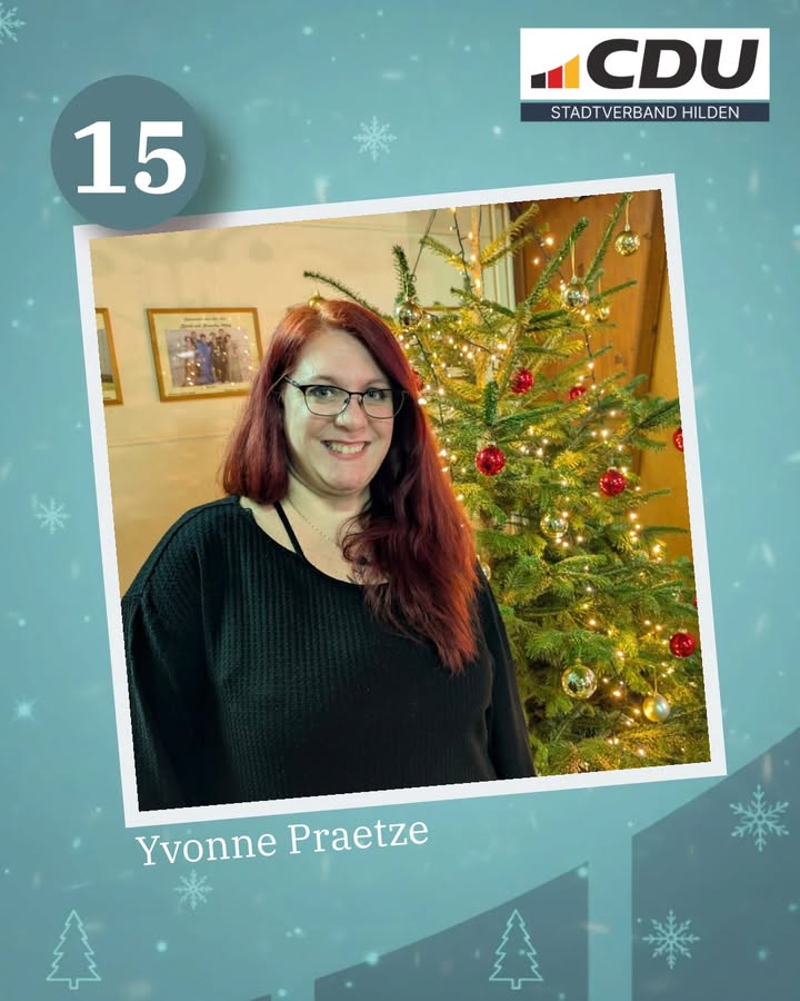 mehrHeute öffnen wir unser nächstes Türchen im Adventskalender. 🎄👉 Yvonne Praetze ist Beisitzerin im CDU-Stadtverband Hilden.Besonders schön ist für sie in der Weihnachtszeit das Plätzchenbacken und Baumschmücken mit der Familie. Diese Tage geben ihr die Möglichkeit, bewusst vom Alltag abzuschalten, zur Ruhe zu kommen und sich auf das Wesentliche zu konzentrieren: die Familie und das Zusammensein. ⭐️🍪