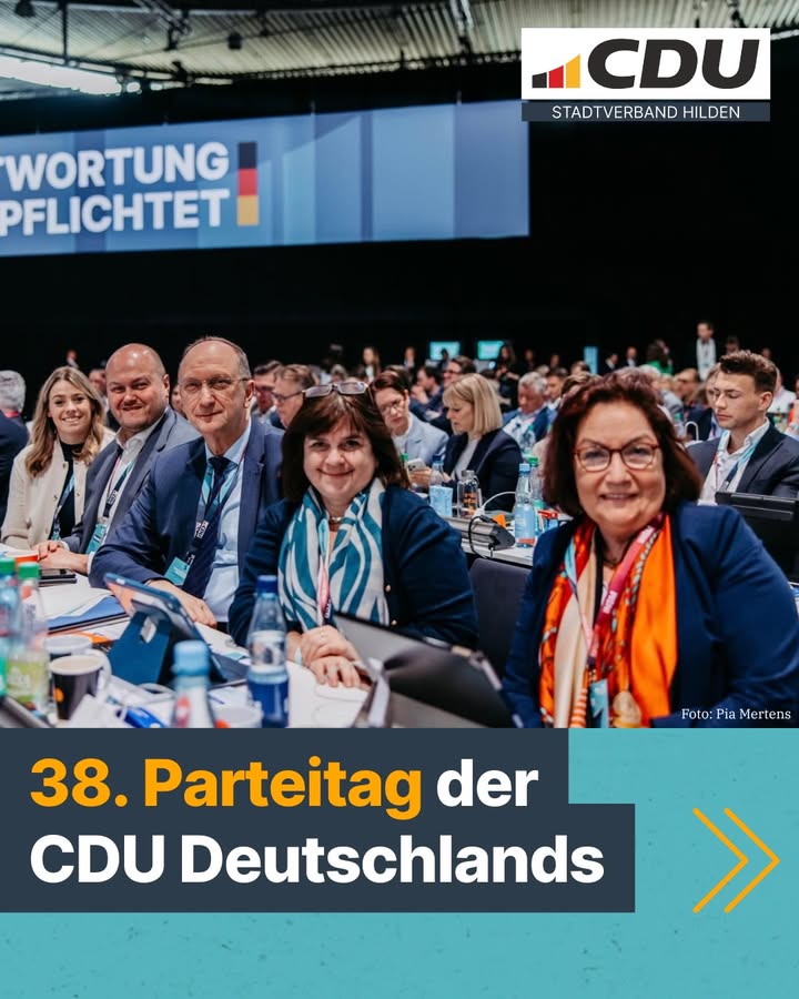 Bundesparteitag der CDU Deutschlands ? "Verantwortung verpflichtet."Unter diesem Motto begann gestern der 38. Parteitag der CDU Deutschlands in Stuttgart. Verantwortlich handeln in schwierigen Zeiten, das ist unser gemeinsamer Auftrag.ℹ️ Der Bundesparteitag (BPT) ist das höchste Beschlussgremium der CDU. Hier werden politische Leitlinien festgelegt, Anträge beraten und zentrale personelle Entscheidungen getroffen, darunter auch die Wahlen des Bundesvorstands.Hilden ist beim Parteitag unter anderem durch die Landtagsabgeordnete Claudia Schlottmann und den Bundestagsabgeordneten Dr. Klaus Wiener vertreten. 💪Gestern wurde Friedrich Merz mit 91,17 % der Delegiertenstimmen erneut zum Vorsitzenden der CDU Deutschlands gewählt. Er ist seit vier Jahren Vorsitzender der CDU Deutschlands ? wir gratulieren herzlich zur Wiederwahl! 🙌Seitdem hat sich viel in der CDU bewegt: ein neues Grundsatzprogramm mit programmatischer Klarheit, Wahlerfolge in Kommunen und Ländern, der Gewinn der Europawahl und seit knapp einem Jahr trägt die CDU unter seiner Führung wieder Verantwortung für Deutschland.💬 Friedrich Merz dazu:?"Die Zukunft gehört denen, die handeln. Wir haben es in der Hand. Es geht um unser Land. Es geht um Deutschland in Europa."📸: @piamertens.businessfotografie
