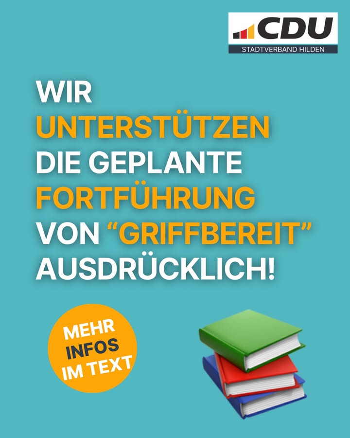 Am Samstag, 09. Mai 2026, ist die CDU Hilden von 11 bis 15 Uhr mit einem Stand auf der Mittelstraße vertreten. Im Rahmen der Ehrenamtsbörse laden wir Sie herzlich ein, unseren Vorstand kennenzulernen und sich aus erster Hand über unsere politische Arbeit vor Ort zu informieren. Sprechen Sie mit uns über die Themen, die Sie in Hilden bewegen. Lernen Sie uns persönlich kennen und bringen Sie Ihre Anliegen ein. Sie möchten sich politisch engagieren? Informieren Sie sich vor Ort über Wege in die Mitarbeit und Mitgliedschaft. Kommen Sie vorbei – wir freuen uns auf den Austausch!
